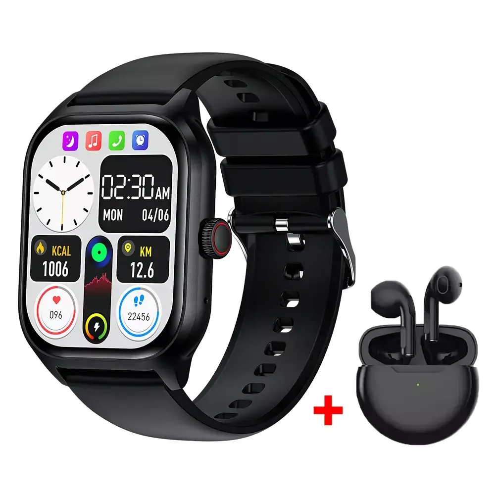 Relógio inteligente com design moderno, tela retangular HD de 2.01”, funções completas para monitoramento de saúde, fitness e notificações. Compatível com Android e iOS.