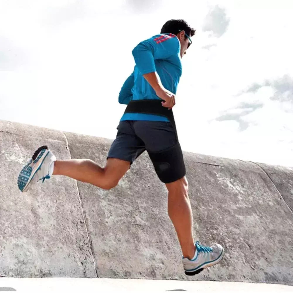 Suporte ergonômico projetado para aliviar dores em coxa, virilha, glúteos e músculos adjacentes. Ideal para atletas, pessoas em recuperação de lesões ou qualquer indivíduo que precise de suporte confortável, compressão eficaz e aquecimento terapêutico durante atividades físicas ou descanso.